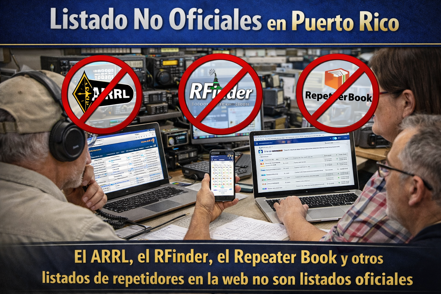El ARRL, el RFinder, el Repeater Book y otros listados de repetidores en la web no tienen que ver nada con las entidades coordinadoras de frecuencias su proposito principal es recolectar información de los diferentes directorios de las entidades coordinadoras en los estados y sus territorios con el fin de publicarlo pero los radioaficionados deben tener cuidado con la información presentada porque puede contener errores o que no este actualizada con los directorios oficiales. . El Directorio oficial en Puerto Rico/Islas Vírgenes es el del PRVIVFC es que está actualizado de acuerdo a solicitudes de sus trustees y todo radioaficionado que residen en Puerto Rico e Islas Vírgenes debe consultar con este directorio para programar sus equipos correctamente.