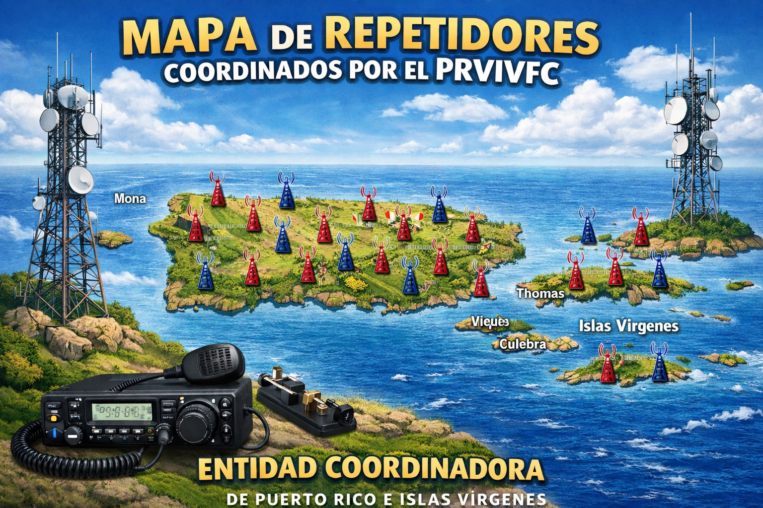 MAPA DE LOS REPETIDORES COORDINADOS EN PUERTO RICO E ISLAS VIRGENES (PRVIVFC)