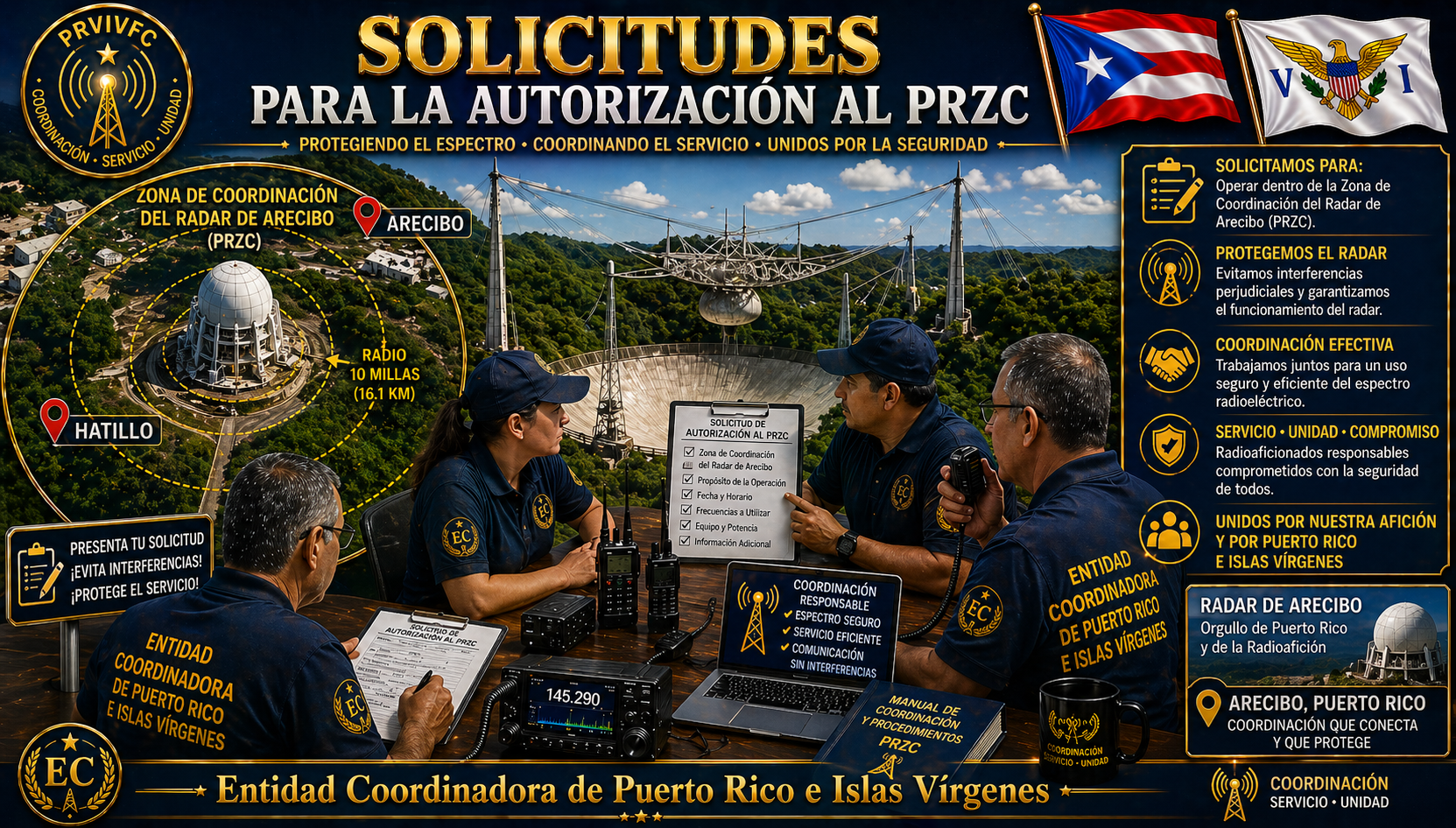 Para mayor información del Puerto Rico Zone Coordination del Observatorio de Arecibo ir al siguiente enlace: Puerto Rico Zone Coorditation PRZC