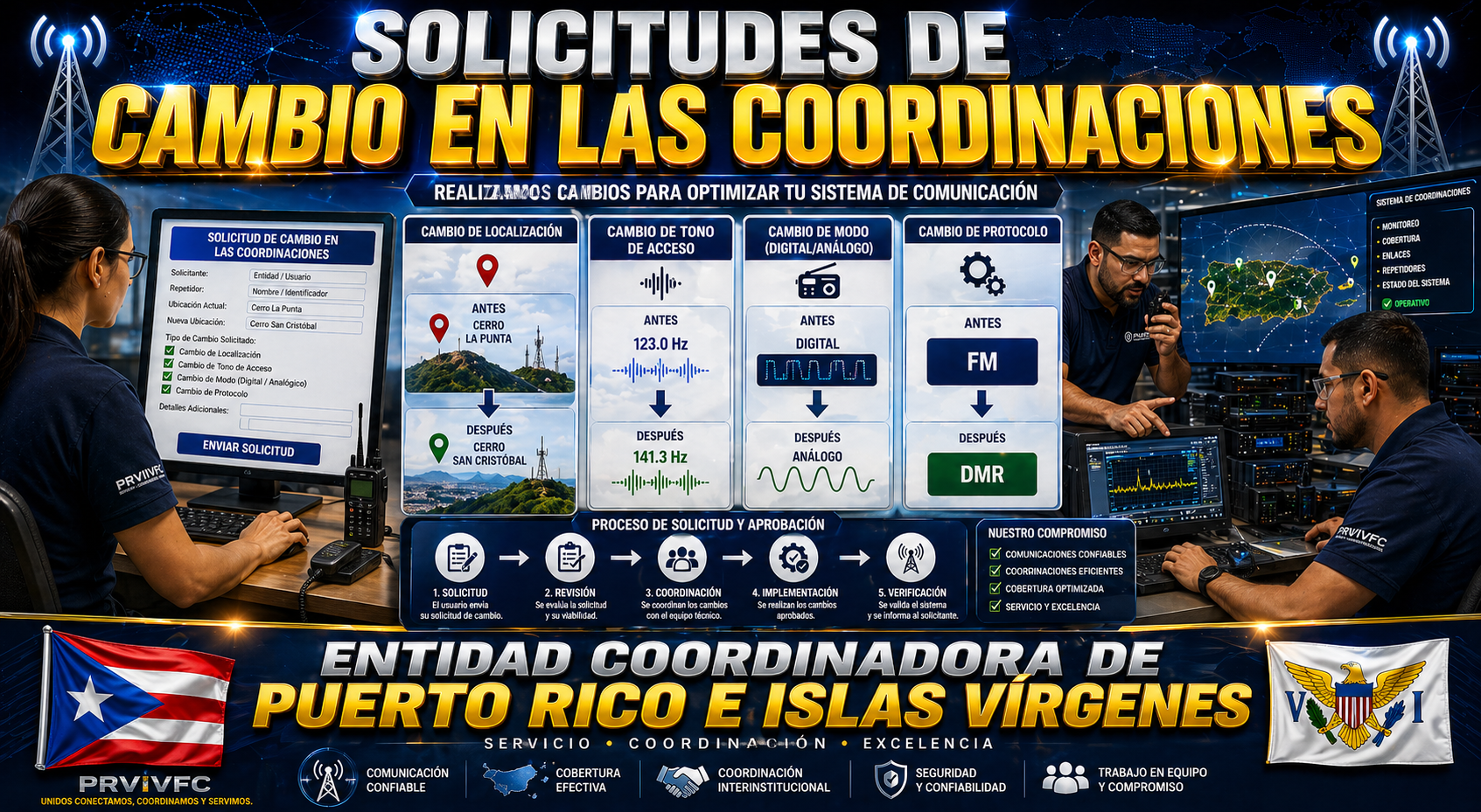 | 1/23/2026 12:51:45 | Luis B. Aponte Seguí | KP4LBA | 440.825 y 449.500 | 440.825 que esta en Culebra ahora estara en la carr 976 en el barrio Florencio de Fajardo . 18.3198842, -65.6614430 Y El 449.500 que esta en Fajardo ahora estara en el barrio Florida en Vieques. 18.1285540, -65.4453246 |